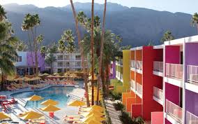 • The best hotels in Palm Springs The Saguaro Palm Springs This renovated Holiday Inn hotel, which was renovated by The Sydell Group, spells fun, from patios covered in blue Astroturf to walls painted pink, orange and lime green. Sunlit guest rooms show off an American Southwest flavour, with colourful Mexican blankets and hand-made furniture.