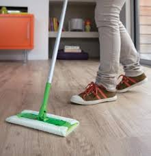 You’ll first need something to get up the loose dust, dirt and debris. A soft broom and dustpan can be used. You might prefer to vacuum the floor. If so, use a lightweight vacuum that does not have a rotating bristle bar or one with a “hard floor” mode that does not engage the bar.A slightly-damp mop can be used to remove remaining debris. If excess water remains on the floor after cleaning, use a towel to dry it.