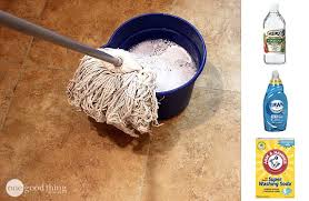 This step is especially important during rain and snow seasons. Does your tile floor look nasty no matter how often you mop? Try a stronger cleaning solution. These different deep-cleaning solutions will remove greasy residues and stains without damaging your tiles. 1. Mop the floor with a mix of ½ cup white vinegar and a gallon of warm water. The acidity in vinegar can work as a natural grease-remover that makes this approach especially useful for kitchens. You can also use ½ cup of plain rubbing alcohol as a substitute for vinegar. 2. Mix fresh water and dish detergent and mop it on the floor to remove hard grease. 3. Spot-clean stains with a mixture of half scouring powder and half warm water. Spread the mixture onto a stain by using a clean cloth and let it sit on the tile for 5-10 minutes. Then, scrub the area with a soft brush and thoroughly rinse the tile with warm water and a cloth. Please note that acids like vinegar and some other cleaning products will erode natural stone tiles.
