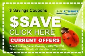 - Go BackSafe Solutions Carpet Cleaning Coupons for Nashville, Franklin, Murfreesboro and all Middle TNFind Coupons Near You Coupons for this service 2 Areas for $69 Carpet Cleaning Special Areas Over 250 Sq. Ft. May Be Charged As Multiple Areas. 3M Scotch Guard Available at an Extra Charge. Coupon valid from Turbo Carpet Cleaning Surface Solutions. Coupon void if altered. One coupon per party.