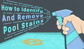 Use can use test strips to test the water. How to Identify and Remove Pool Stains To address this problem, the source of pool stains must be identified, and the appropriate solution introduced as soon as possible. For multiple or large stains, the water should be triple shocked by adding 3 pounds of calcium hypochlorite pool shock for every 10,000 gallons of water.