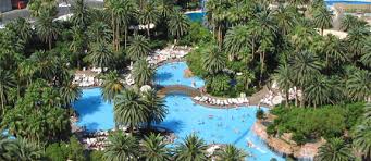 A signature 1.6-million-gallon wave pool capable of waves up to six feet high. Also featured is a lazy river, three standard pools including the Euro-bathing Moorea Beach Club, jogging track, private daybeds, cabanas and beach bungalows . Flamingo Hotel & Casino 3555 Las Vegas Blvd. South, Las Vegas, NV 89109 With Caribbean-style foliage as the backdrop, guests of the Flamingo Las Vegas can take their pick from two 80-foot-long heated, Olympic-size swimming pools, a children’s pool, a 150-foot zigzag water slide, and two outdoor giant whirlpool spas. There is also swim-up blackjack and refreshment bars within paddling distance. The Flamingo is also home to the GO pool. Mirage Hotel & Casino 3400 Las Vegas Blvd., Las Vegas, NV 8910 The Mirage pool is a series of connected lagoons with coves and waterfalls. A Polynesian tropical jungle lagoon full of greenery, palm trees and waterfalls, the Mirage pool is one of the best landscaped pools in Las Vegas.