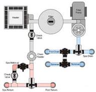 The classic suction cleaner was the Kreepy Krauly, made in South Africa it became the most popular cleaner in the UK. It works by having a large circular rubber pad that grips the floor of the pool and a plastic moulded head on to which are attached lengths of suction hose that connect to the bottom of the skimmer basket. Inside the head there is a device called the “diaphragm”, this is a rubber tube that is circular at one end and has a slit at the other. As the water is sucked through the diaphragm the head vibrates and that makes it move around the pool. On top of the head is a deflector ring to help stop the cleaner getting stuck in corners. The basic design of the Kreepy Krauly has been copied and refined by many manufacturers including Chinese companies that are producing good quality, very cheap cleaners. The SX900 and the Dipper Max are examples of Chinese made footpad cleaners that are very well made and very reasonably priced. The Hayward Navigator is American made and has a very different design to the footpad cleaners.