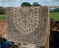 NOTE: We are accepting repair and cleaning of Oriental rugs and Carpets. We clean and service Oriental rugs for many dealers, and can provide the same services to private customers. We've been in busines for many years, and have an excellent reputation in the rug trade. Visit our Rug Repair and Cleaning page here. The best way to keep a rug clean is to keep it from getting dirty in the first place. Removing outdoor shoes when entering the house (as people do in most rug-weaving countries) is a good idea if this accords with your lifestyle. Bare-foot or sock-foot traffic is much gentler to a rug than a hard outdoor-shoe sole (or spike heel), and leaving your outdoor shoes at the entrance to the house tracks in much less dirt. Have your rug cleaned only when it really needs it. For rugs in some areas this will mean a yearly cleaning. Rugs in other areas can go several years and more without needing professional cleaning. To judge how dirty a rug is, try one of these methods: