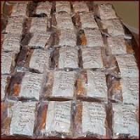 Write down each day’s menu on a paper towel and pull the items needed from the piles around the kitchen – it will look like an assembly line. Remember to allow anything that was in the freezer to return to room temperature before opening.Refer back to your recipes and load up the bags with the ingredients. (1/2 cup of this, 1/4 cup of that, etc.)Tip: A clean anti-freeze funnel (has a wider opening than an oil funnel) can make it easier to add ingredients to the small bags.Photo: Mexican Beef & Rice packed in a sandwich size bag. Seasonings packed in 2 X 3 bags.Put a small slip of paper between the seals of the bags to keep them from sealing all the way. When you vacuum seal the outer bag, the air will get squeezed out of the small bags inside. Exception: Close the 2 x 3 bags containing powders since the powders will have displaced the air already and you don’t want any powder to get sucked into your vacuum sealer. Daily Rations go into Vacuum Seal Bags Results are not perfect.